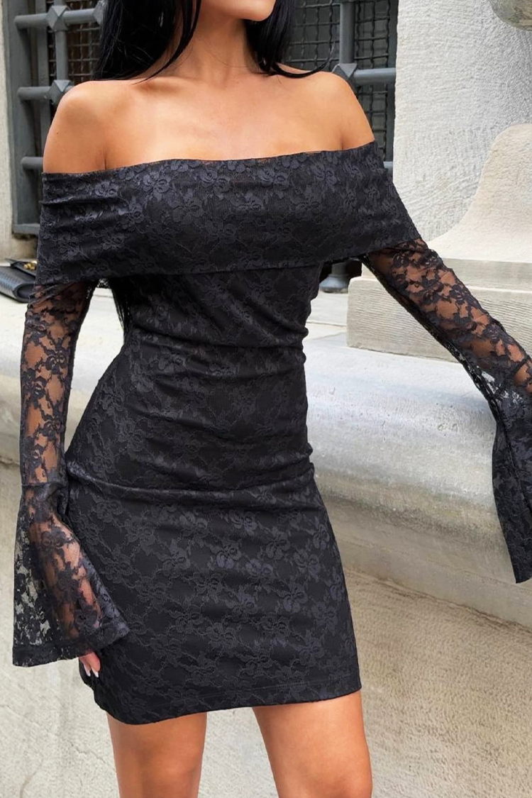 • Моделът е със тренди и вталена кройка, ефектна дантела по цялата дължина, дълги ръкави и паднали рамене.