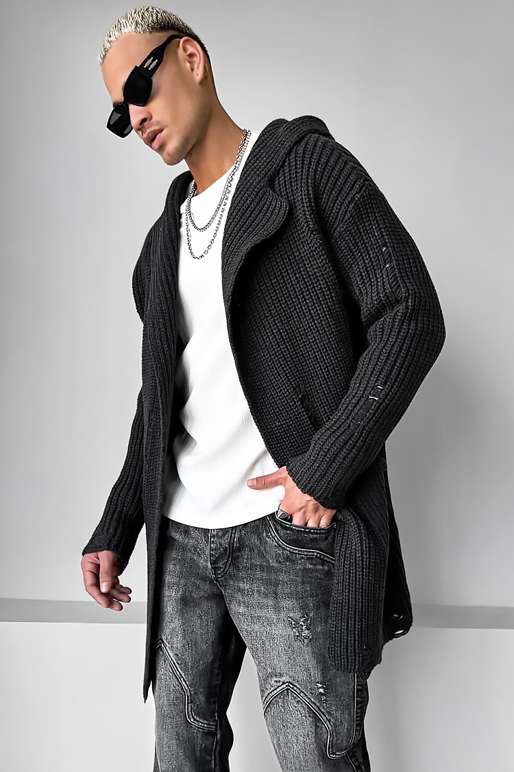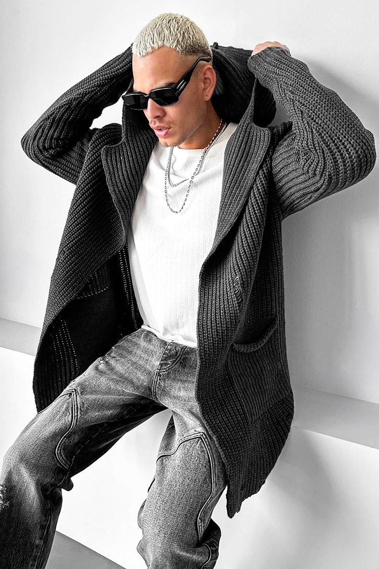- Удобна мъжка жилетка с качулка и джобове в цвят графит, подходяща за ежедневния ви аутфит.