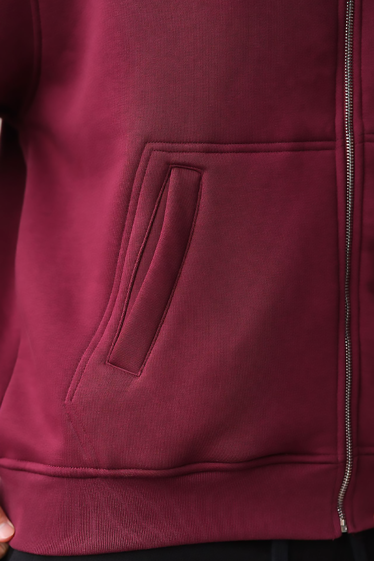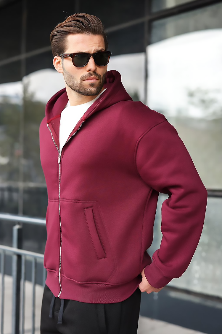 - Удобен мъжки суичър с джобове в цвят бордо, подходящ за ежедневието, спорт или разходка.