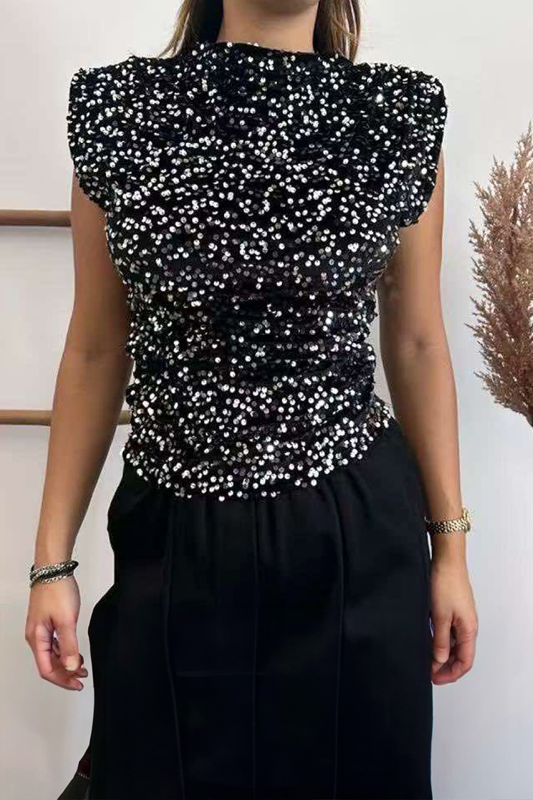 - Топът е с ефектен дизайн и пайети по цялата дължина.
