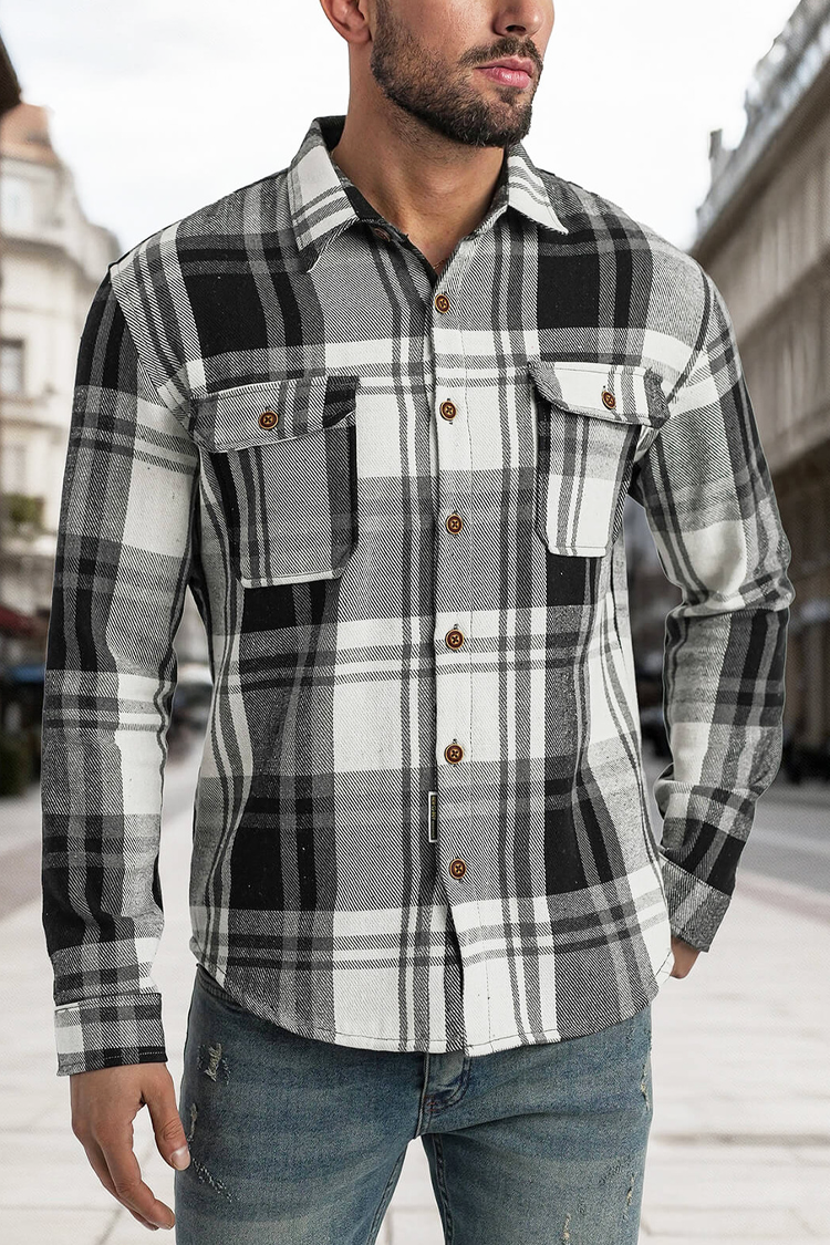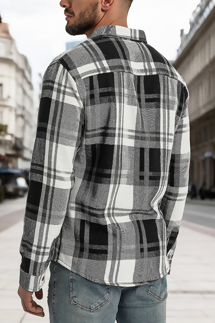 - Стилна мъжка риза с кариран дизайн, подходяща за различни модни съчетания.
