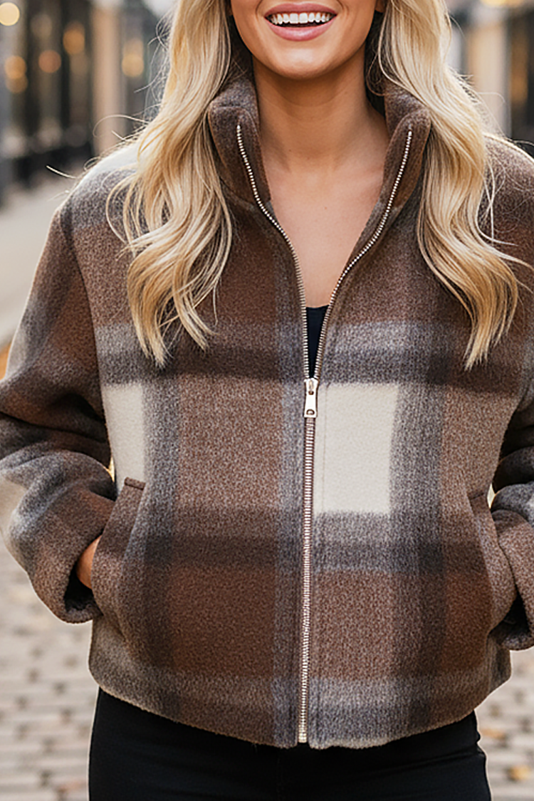 - Изберете това яке с атрактивен каре десен, подходящо за различни тренди и ежедневни визии.