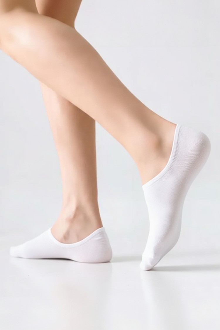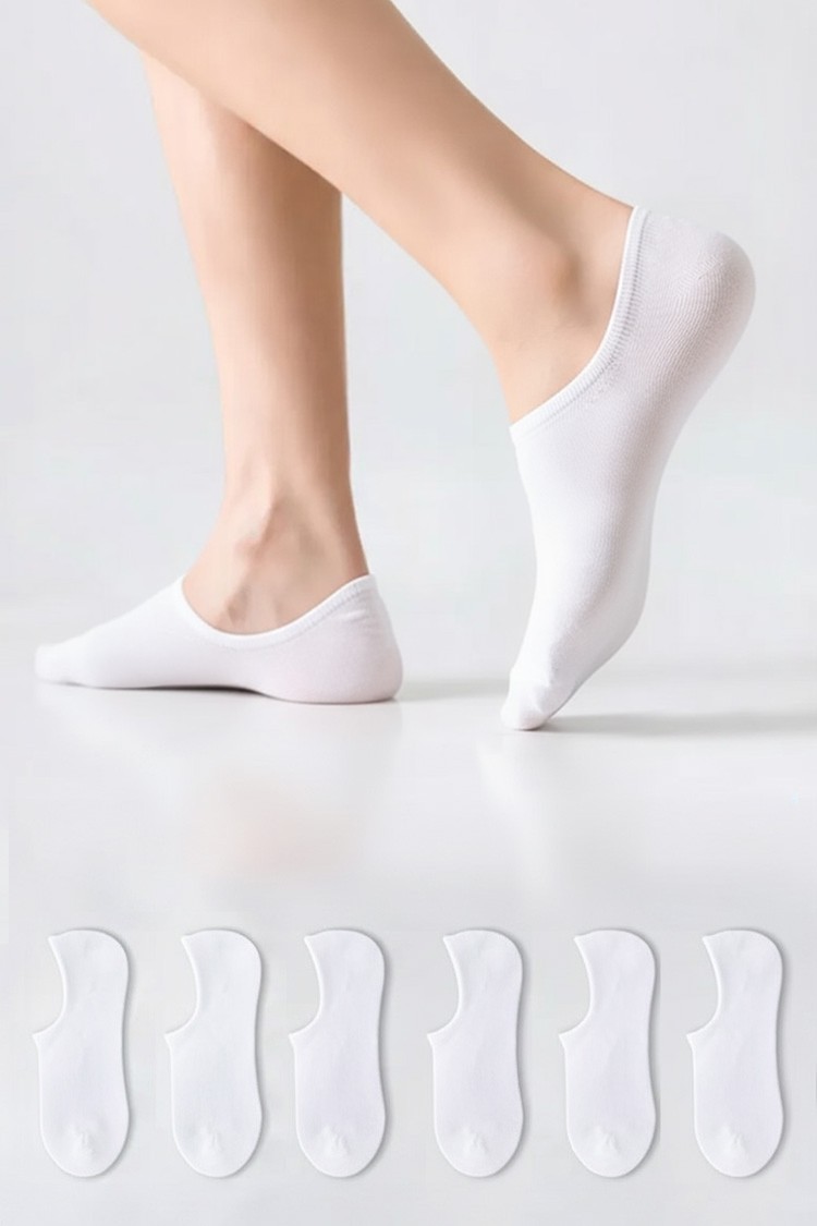 - Комплект от шест броя чорапи тип терлици в класически бял цвят, изработени от еластична материя.