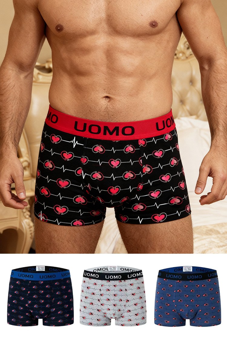 • Комплект от четири броя мъжки боксерки с принт със сърца и ластик с надпис, изработени от памучнадишаща материя.