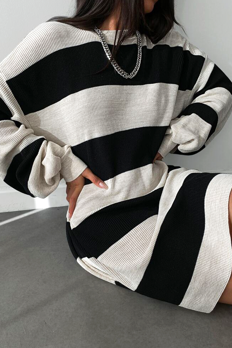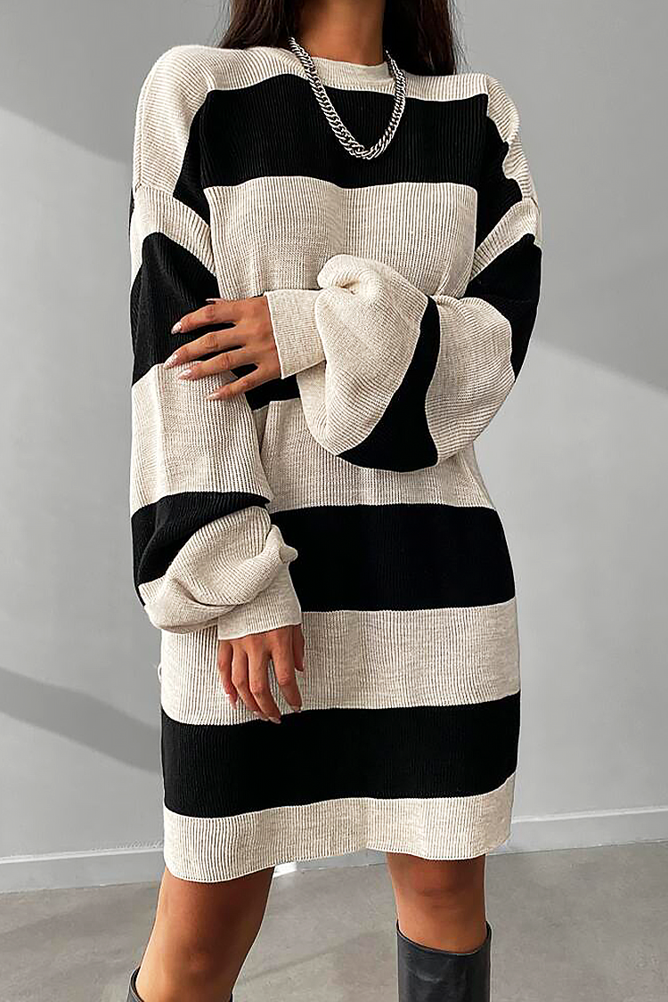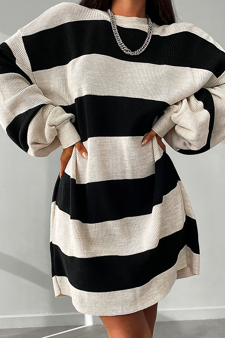- За стилна визия, изберете тази къса рокля с десен на райе.