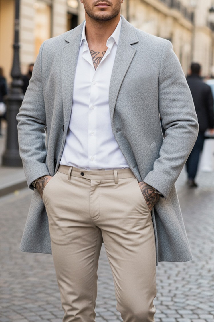 - Елегантно мъжко палто в сив цвят, с което всички ще ви забележат.