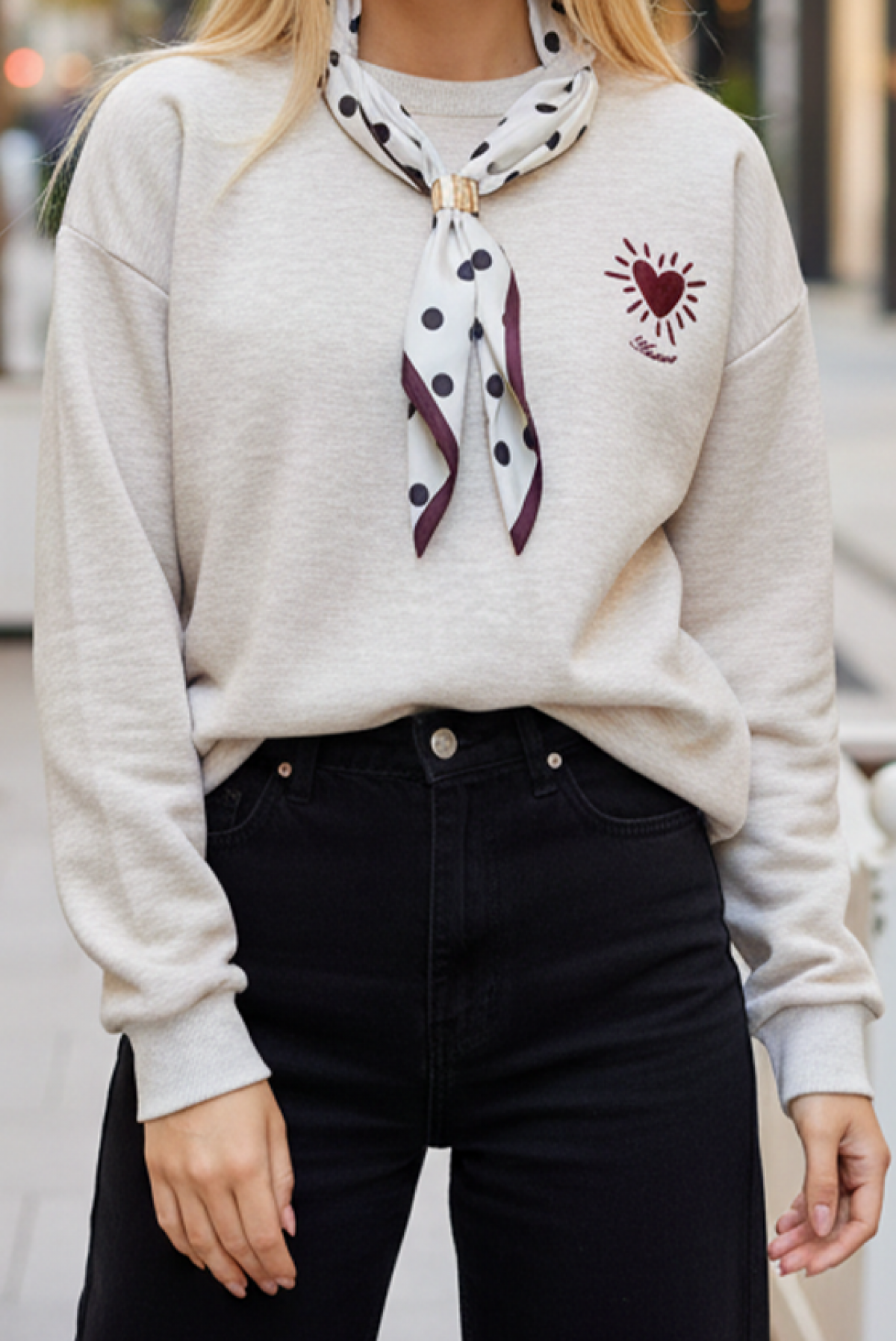 - Моделът е с обло деколте, комфортна кройка и атрактивнен принт и ефектно шалче.