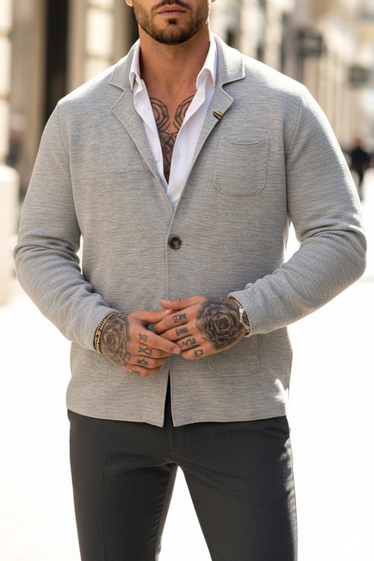 - Практична мъжка жилетка в сив цвят, подходяща за различни модни съчетания.
