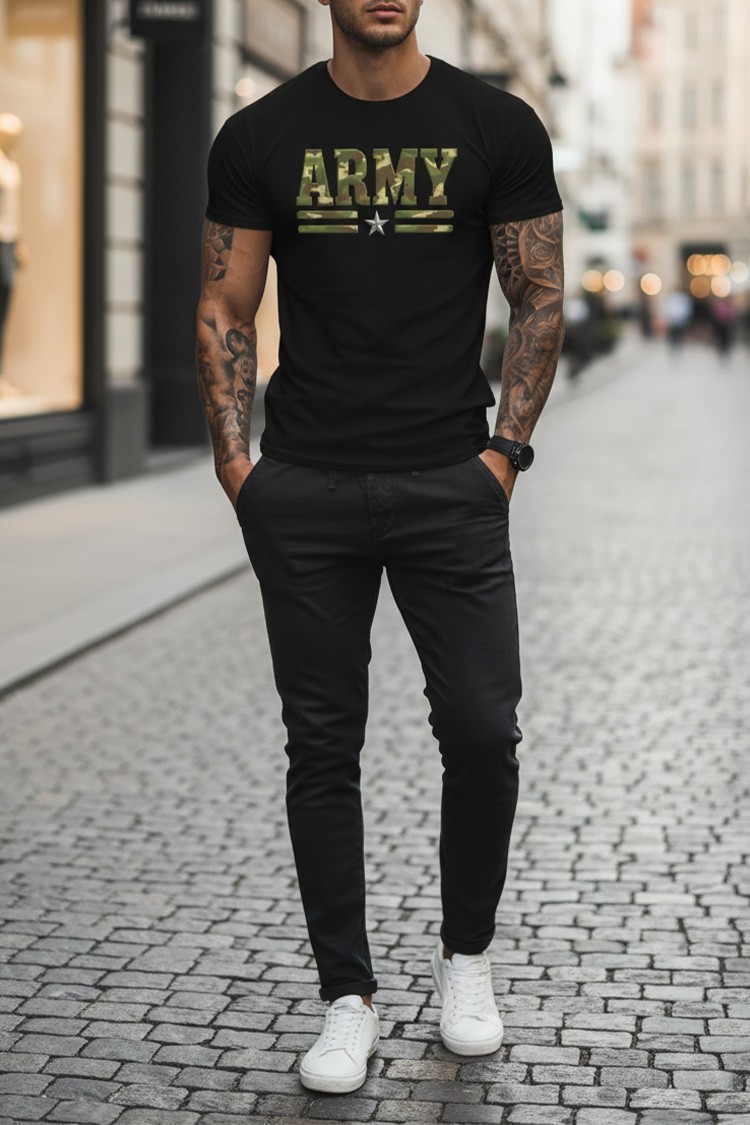 - Праткична мъжка тениска с удобна кройка и камуфлажен принт, подходяща за ежедневието, разходка или като допълнение към спортната ви визия.