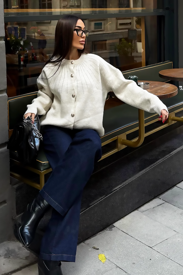 - Акцент на модела са декоративните елементи в горната част и ефектните копчета.
