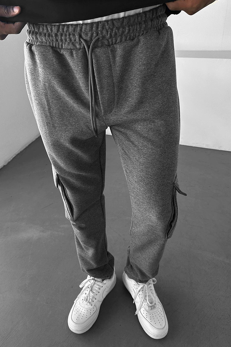 - Мъжки панталон в цвят графит, подходящ за ежедневието или спорт.