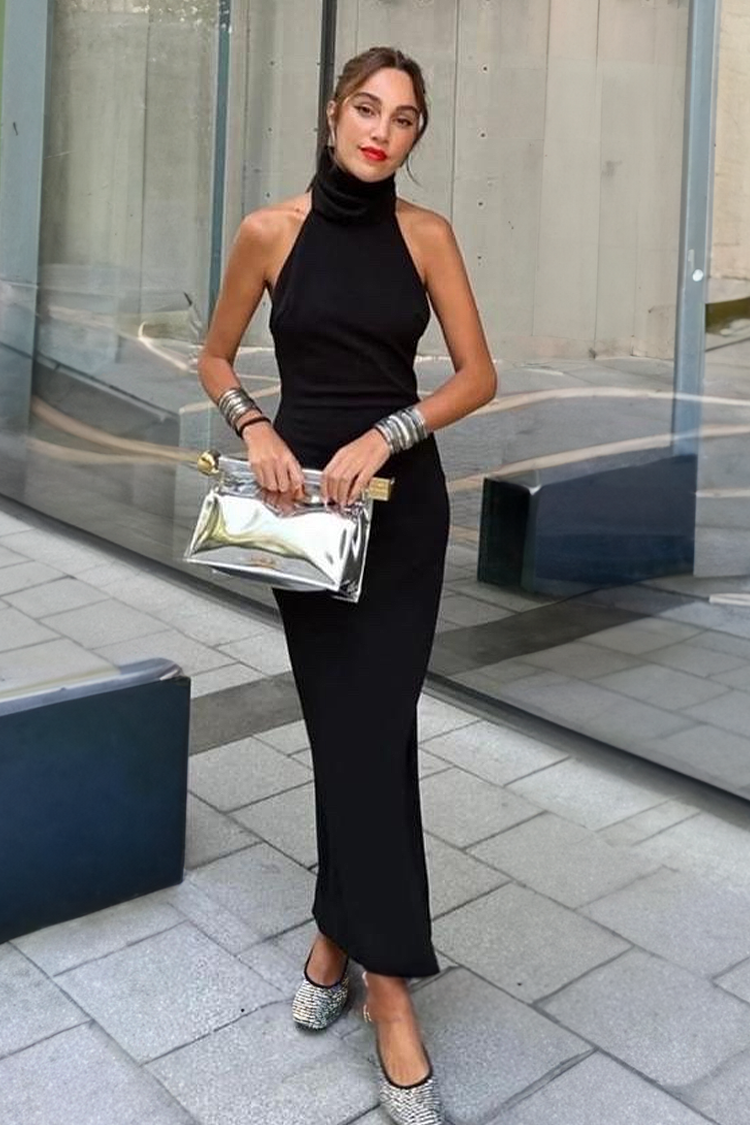 - За перфектната визия, изберете тази дълга рокля с ефектен дизайн.