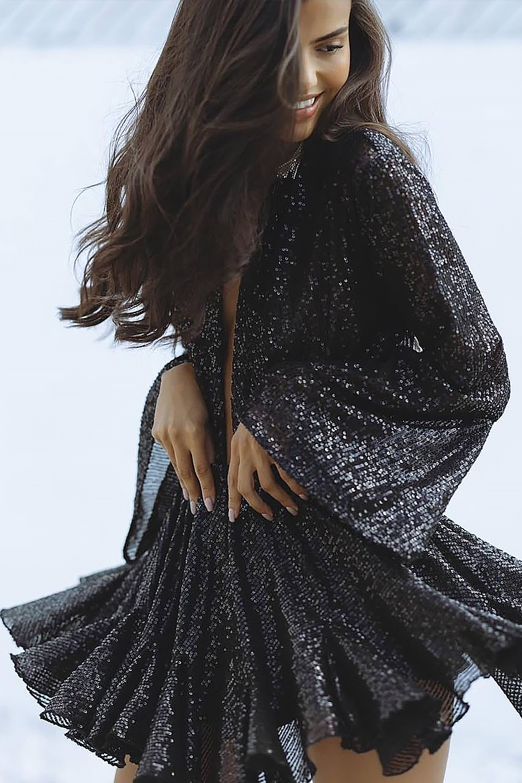 • За перфектната визия, изберете тази къса рокля с атрактивен дизайн в черен цвят.
