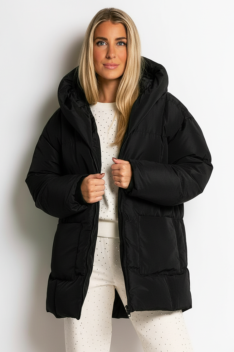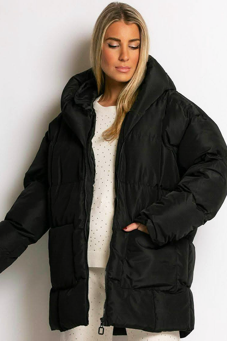 - Моделът е с качулка, за да сте винаги подготвена в студените месеци. Разполага с удобни джобове отпред и се закопчава с цип.