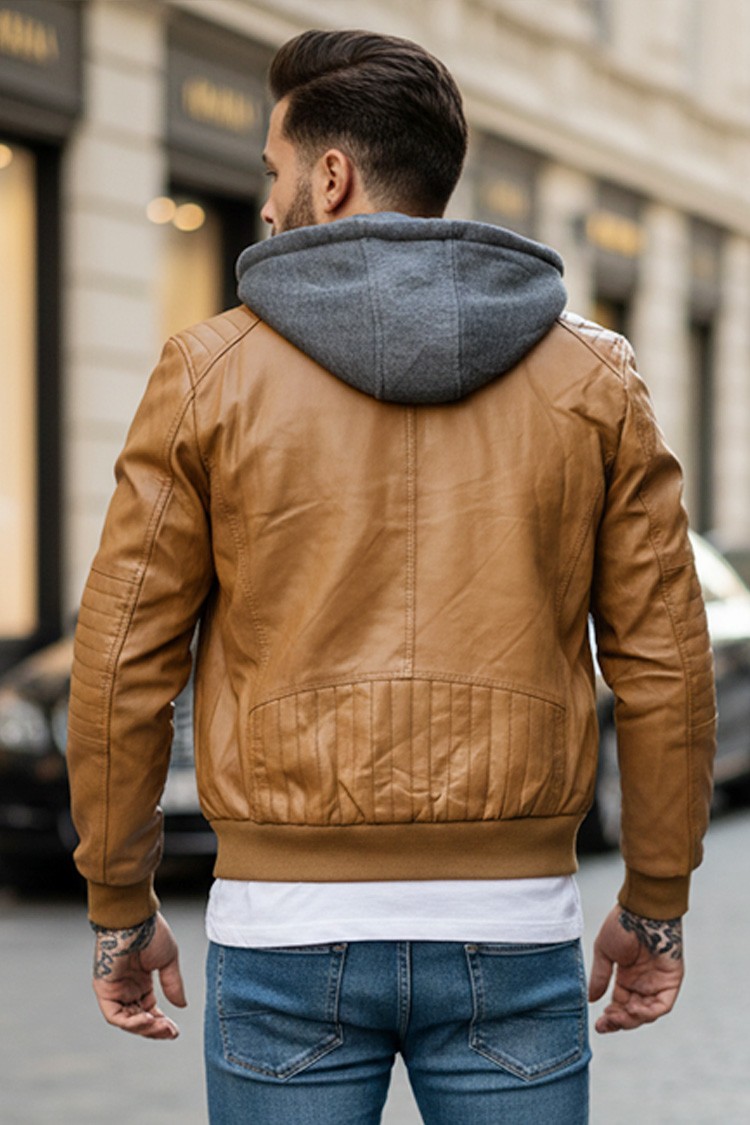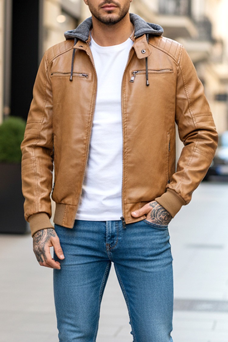 • Мъжко яке с нестандартен дизайн с трикотажна качулка, подходящо за ежедневния аутфит.