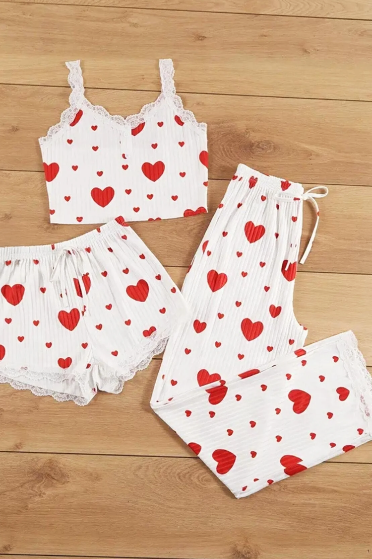 • Горната част е с удобни презрамки и кроп дължина, а панталонът е с висока талия и свободна кройка. Късите панталонки са с връзки на талията и дантела на крачолите.