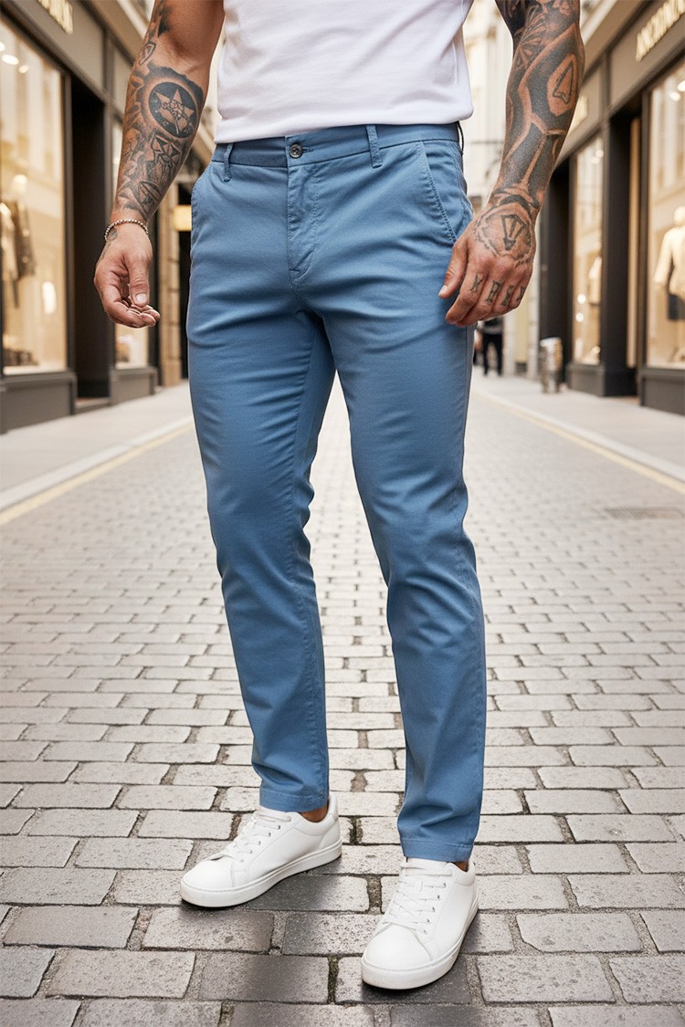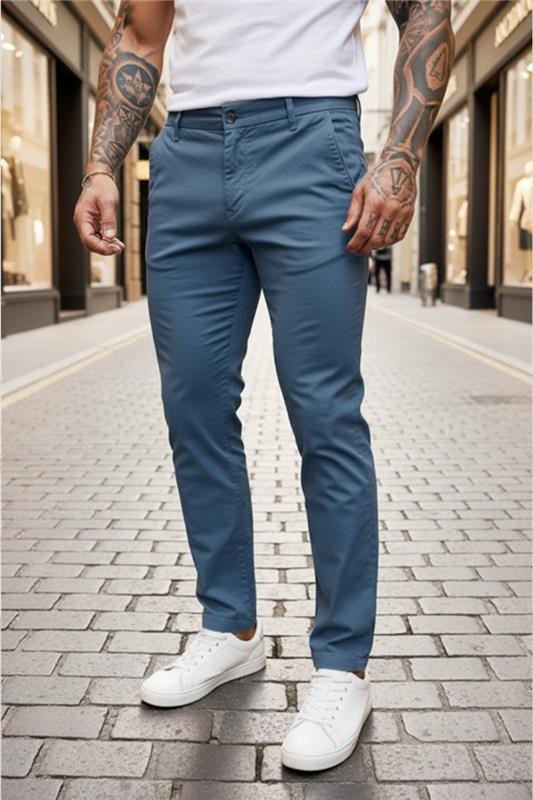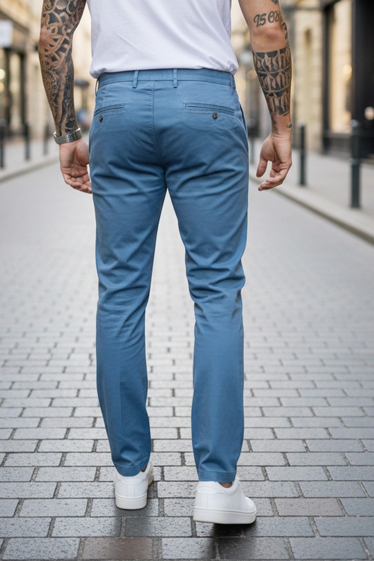 - Basic модел мъжки панталон с прави крачоли в светлосин цвят, подходящ както за ежедневен, така и за по-елегантен аутфит.