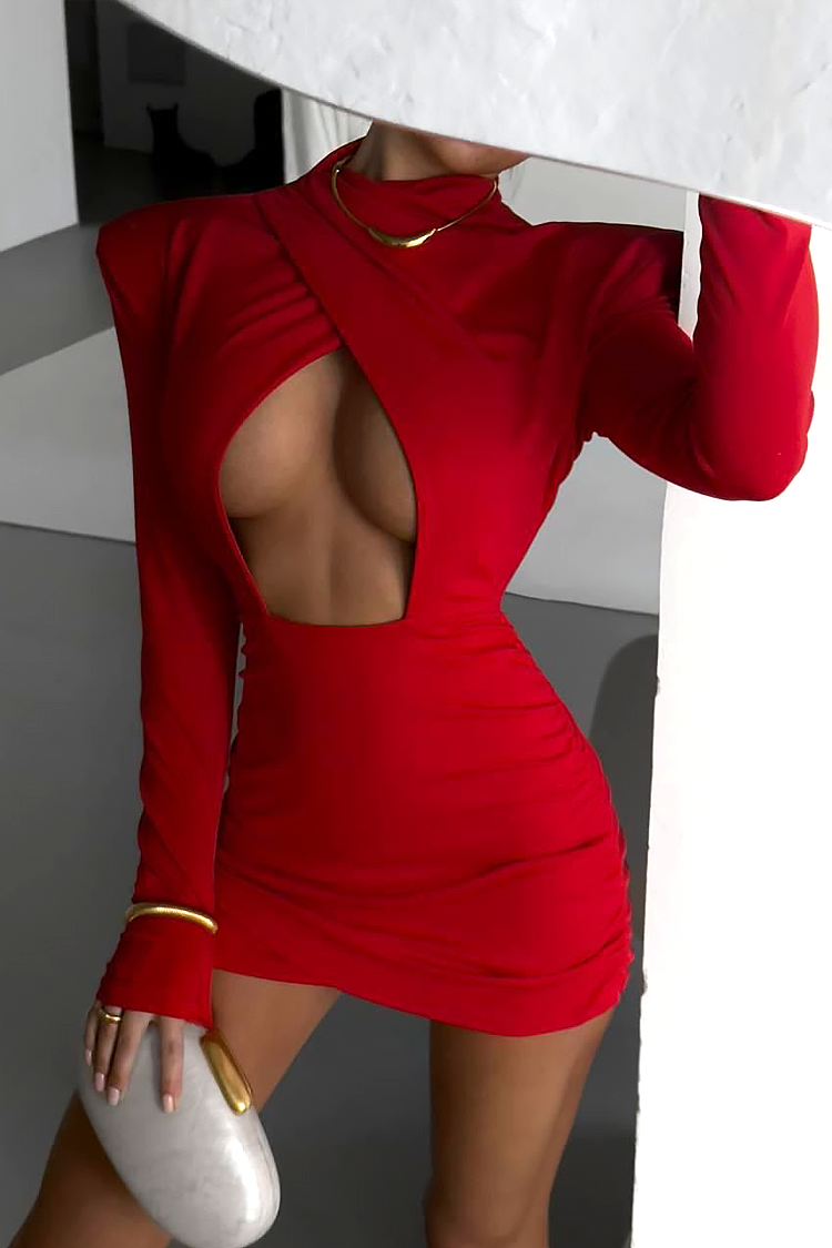 • Моделът е със секси кройка по тялото, дълги ръкави, атрактивно изрязано деколте и подплънки на раменете.