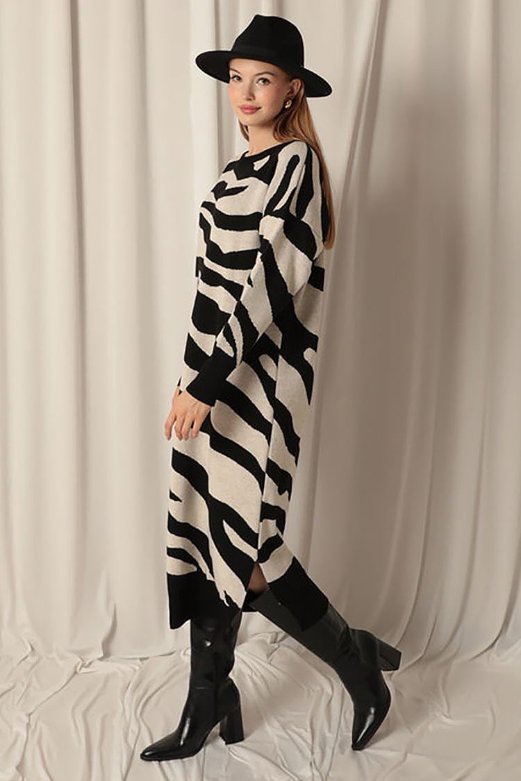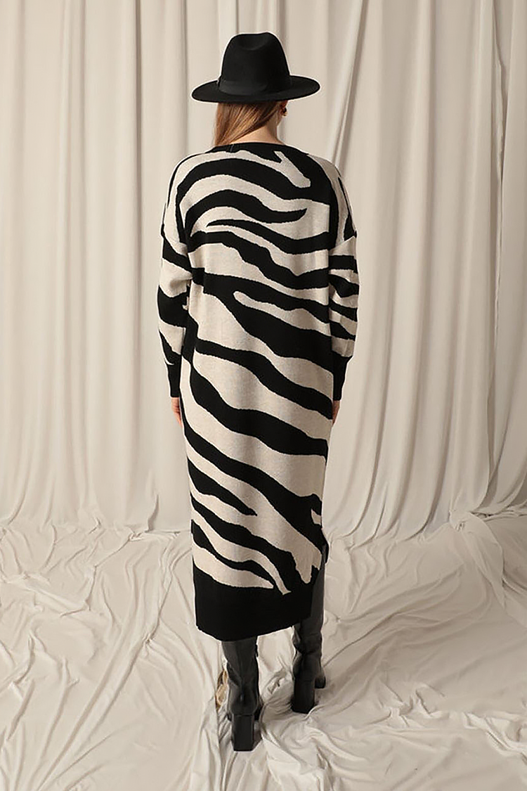 • Моделът е с класическа и свободна кройка, дълги ръкави и зебров десен.