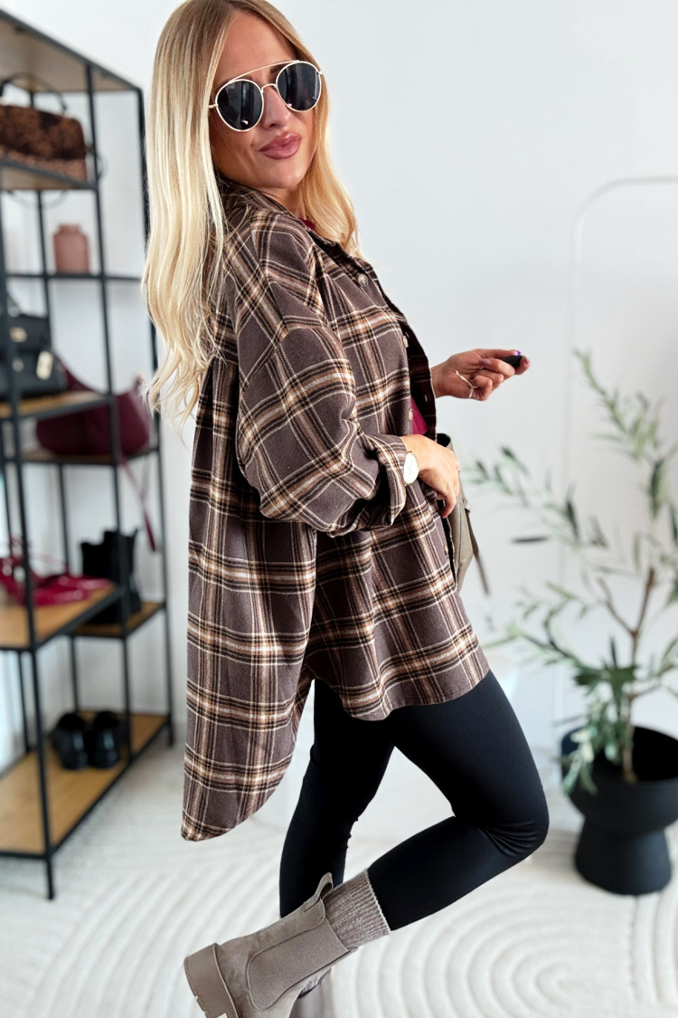 • Моделът е с кариран дизайн, стандартно закопчаване с копчета и овърсайз дизайн.