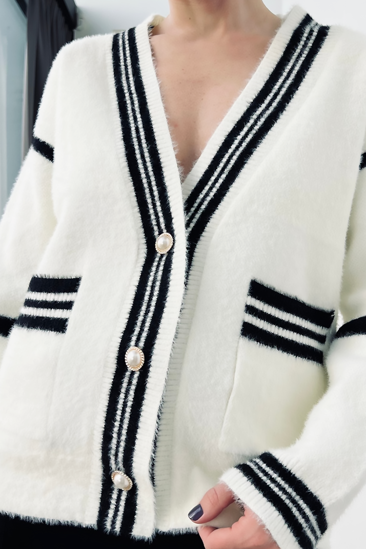 • Моделът е с елегантен дизайн, дълги ръкави, копчета, декоративни джобове и черни детайли.