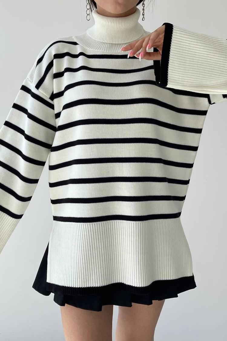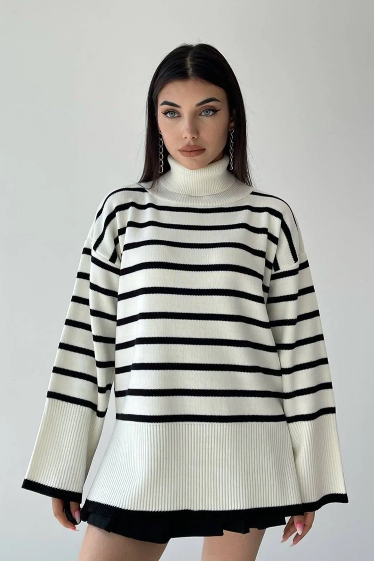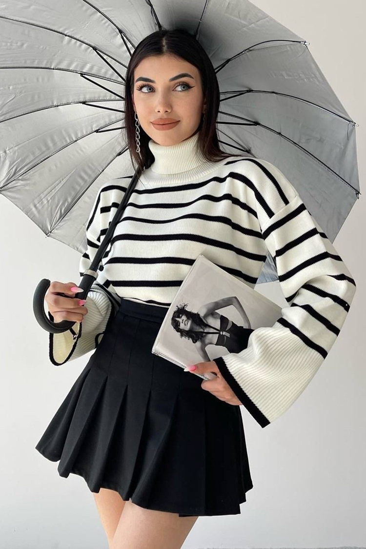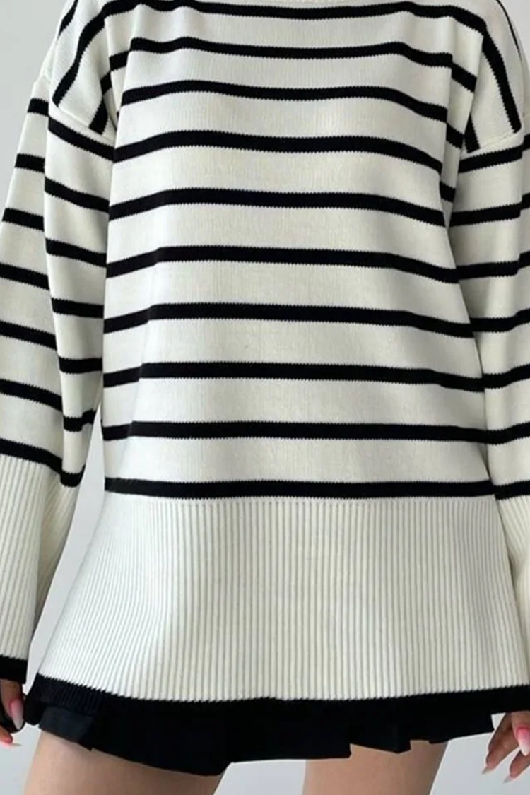 - Практичен пуловер с десен на райе, подходящ за различни, зимни визии.