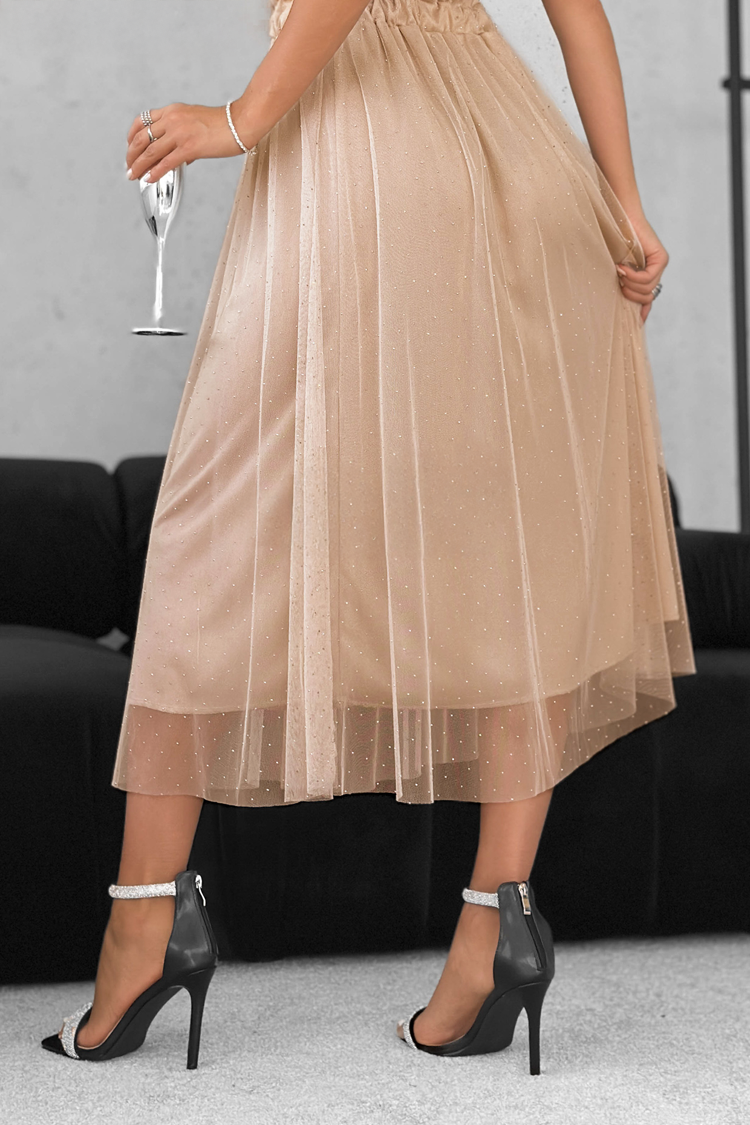 - Моделът е с висока талия и бляскави, декоративни елементи.