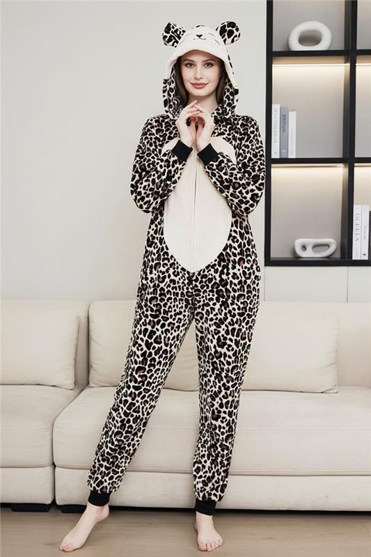 • Моделът е с дълги ръкави, ефектен животински десен, качулка с ушички, цип отпред и опашка.