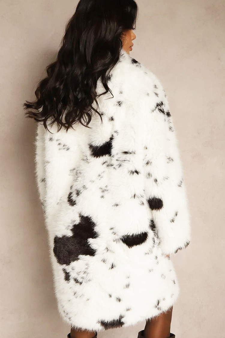 • Моделът е с миди дължина и удобна кройка, обемна яка и кравешки десен.