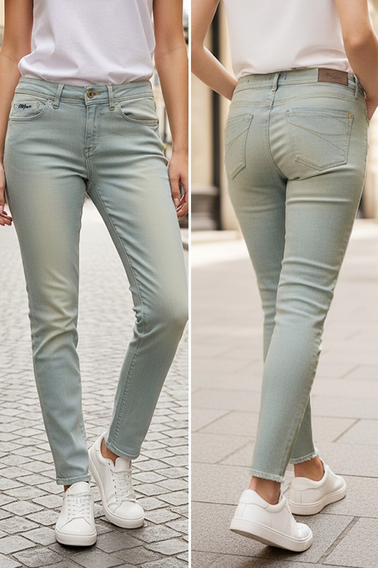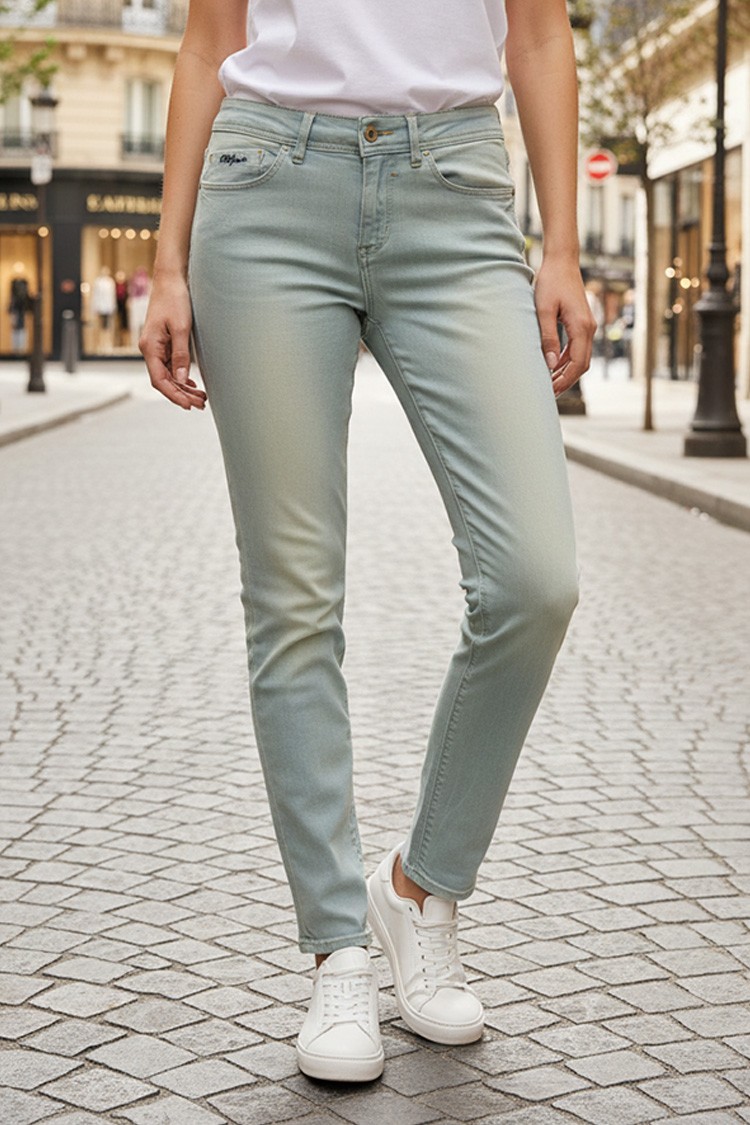 - Средновисоката талия осигурява перфектно прилягане. Моделът се закопчава чрез цип и копче.