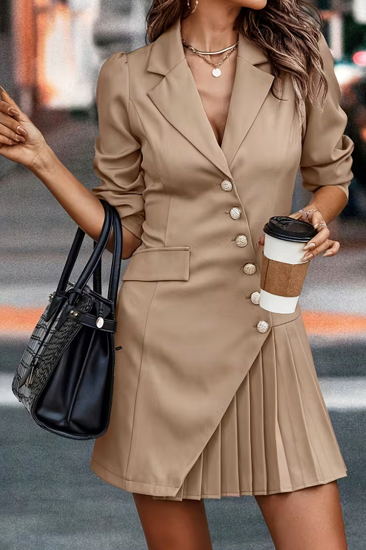 - Изберете тази къса рокля в бежов цвят, подходяща за всеки специален повод и офис визии.