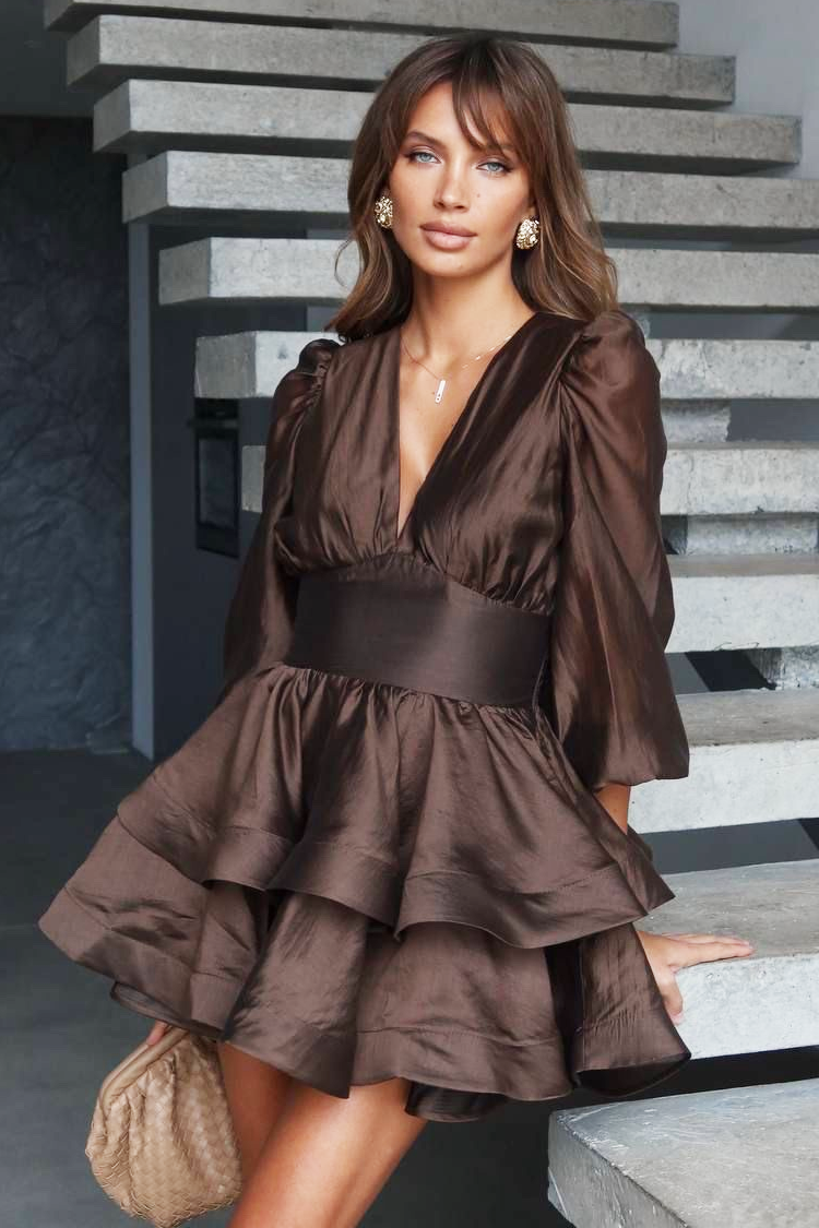• Изберете тази мини рокля, в кафяв цвят, подходяща за всеки специален повод и парти визии.