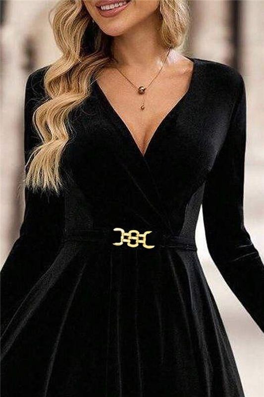 • Моделът е с V-образно деколте, дълги ръкави, елегантна кройка и колан в предната част.