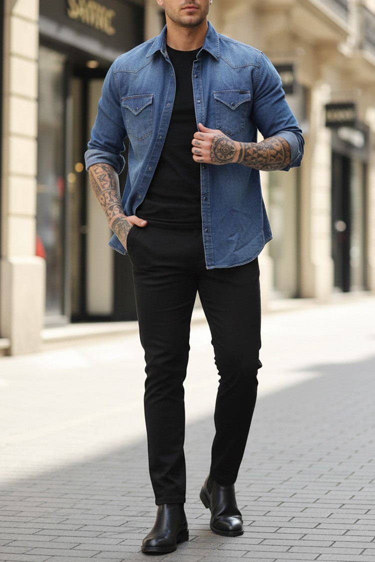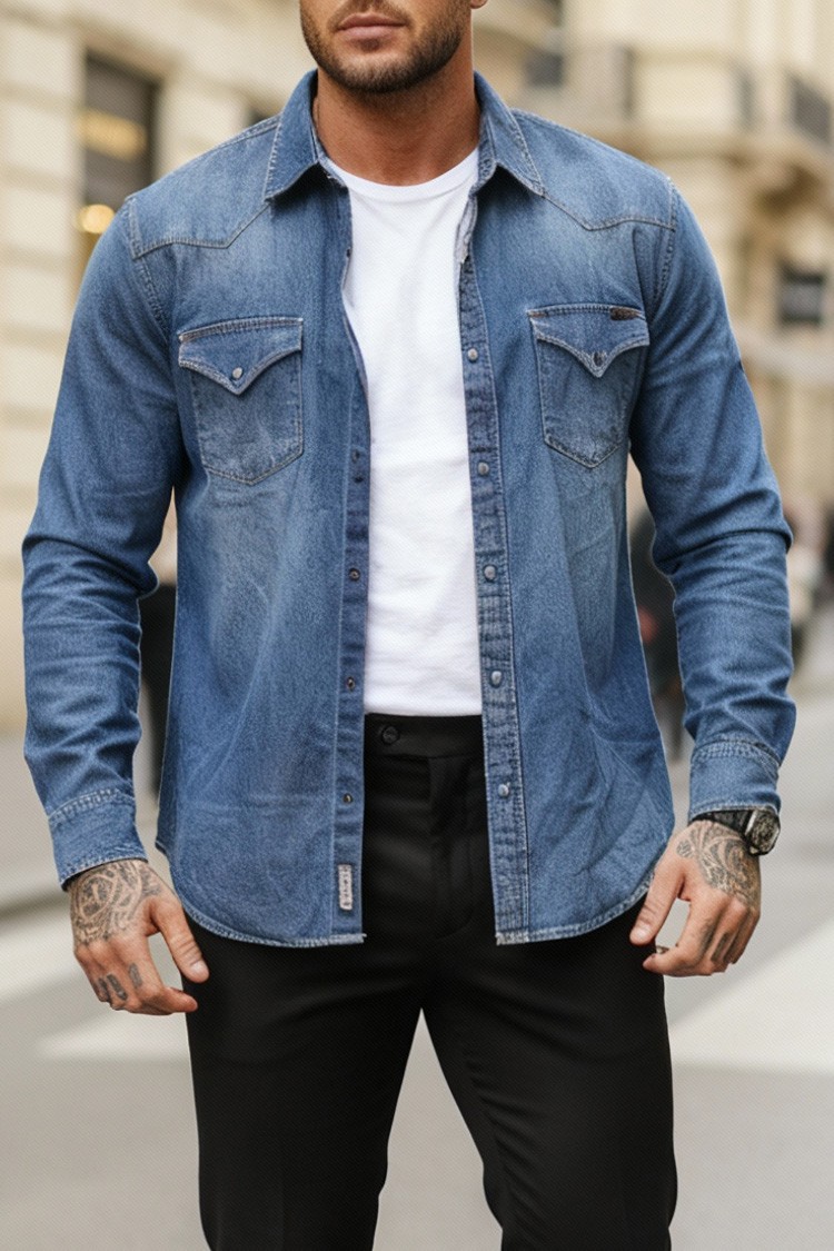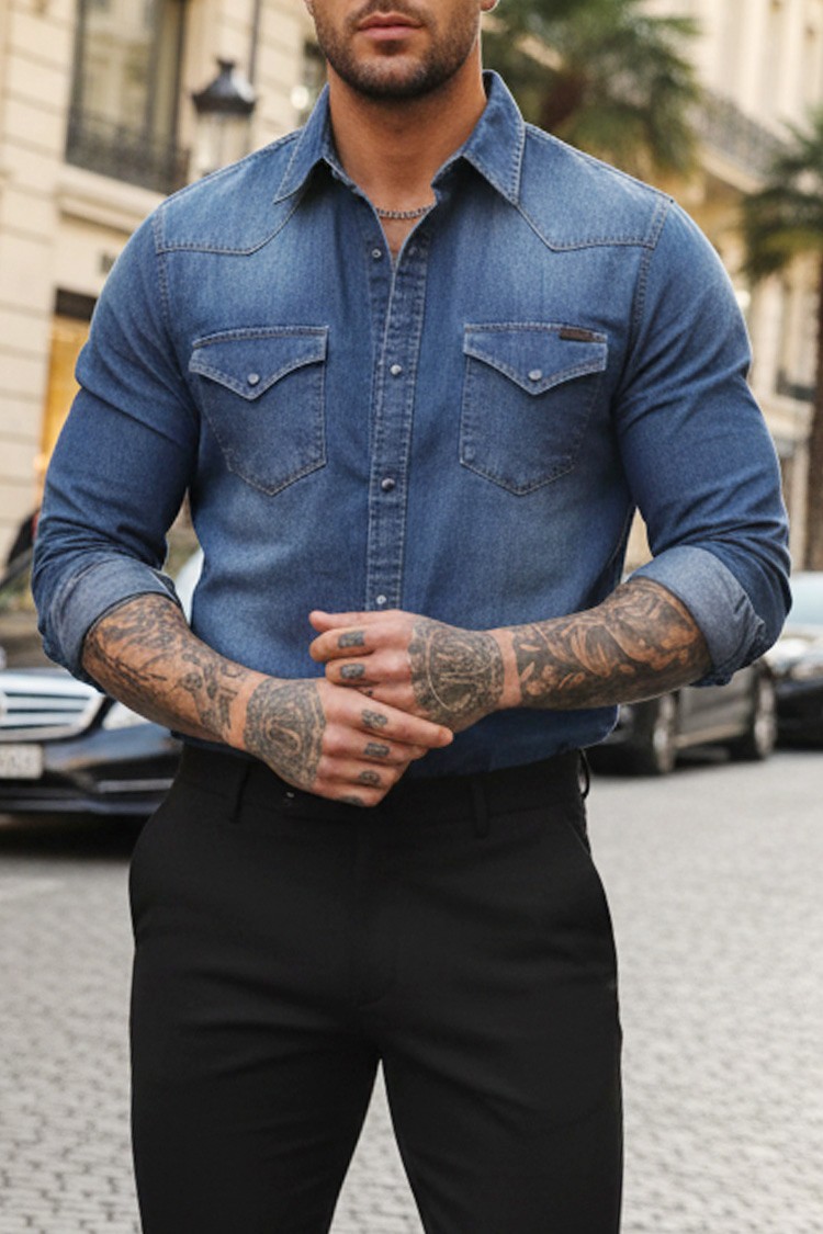 - Практична мъжка риза с изчистен дизайн, джобове с капачета и тик так закопчаване, подходяща за различни модни съчетания.