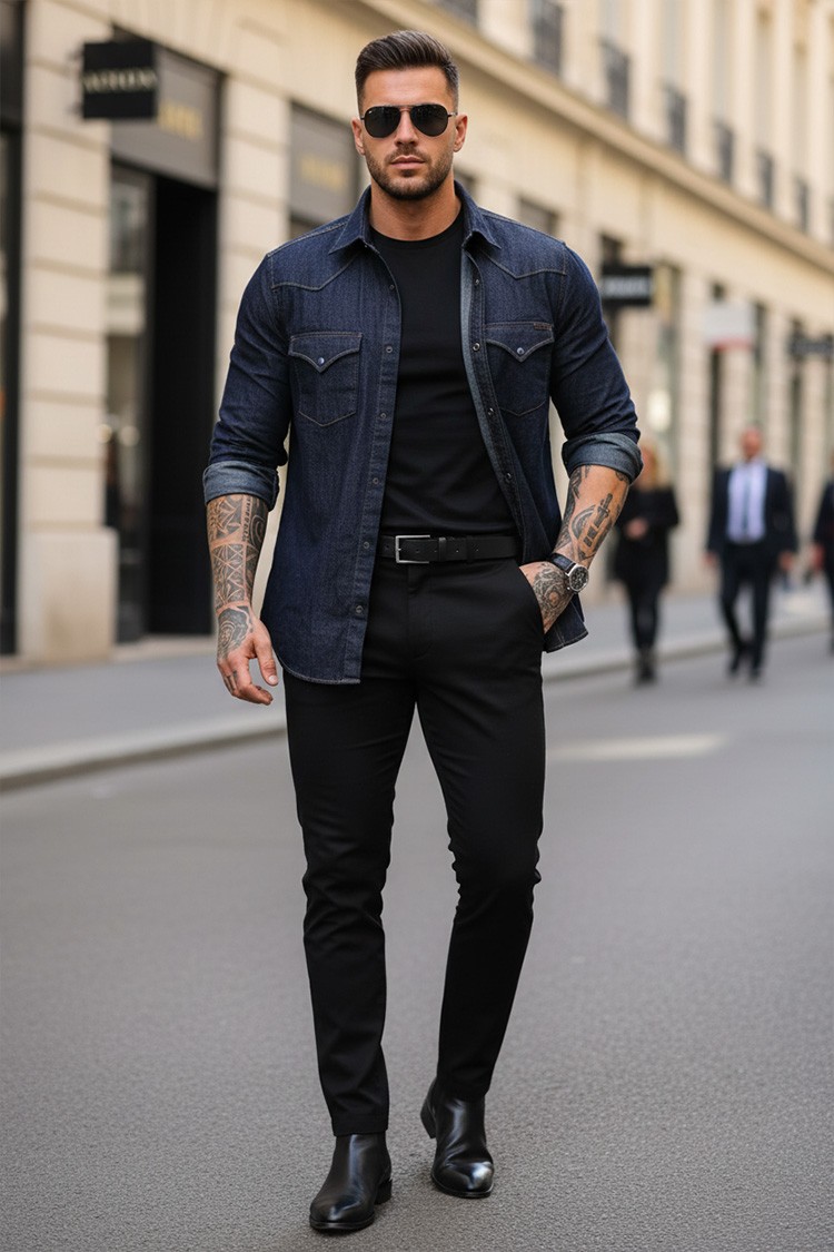 - Практична мъжка риза с изчистен дизайн, джобове с капачета и тик так закопчаване, подходяща за различни модни съчетания.