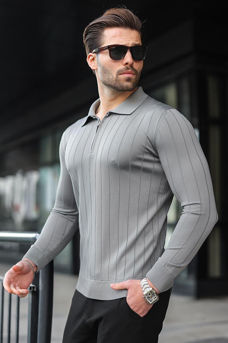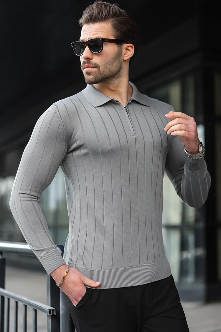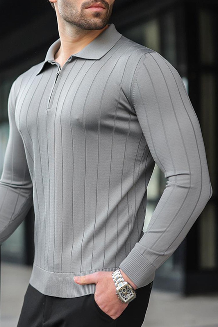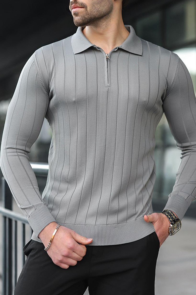 - Удобна и стилна мъжка блуза с яка с цип и едноцветен десен.