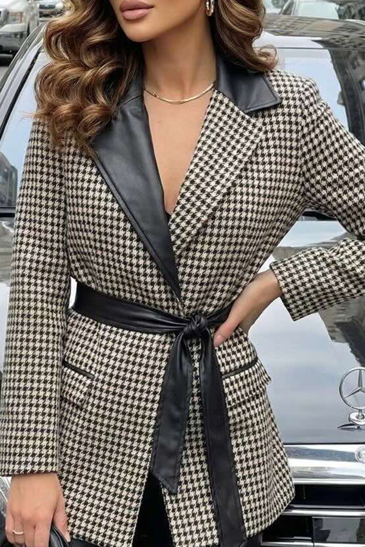 - Съчетайте стилното с удобното! Моделът е с ефектен десен, яка, детайли от еко кожа и колан от същата материя.