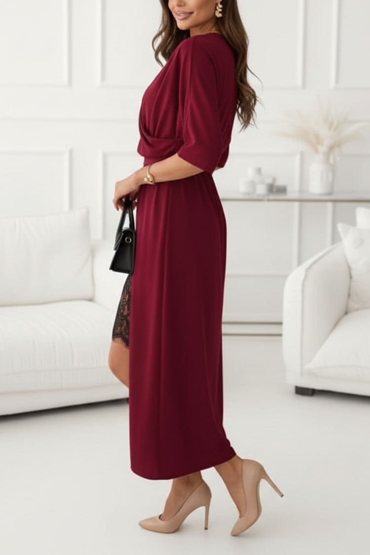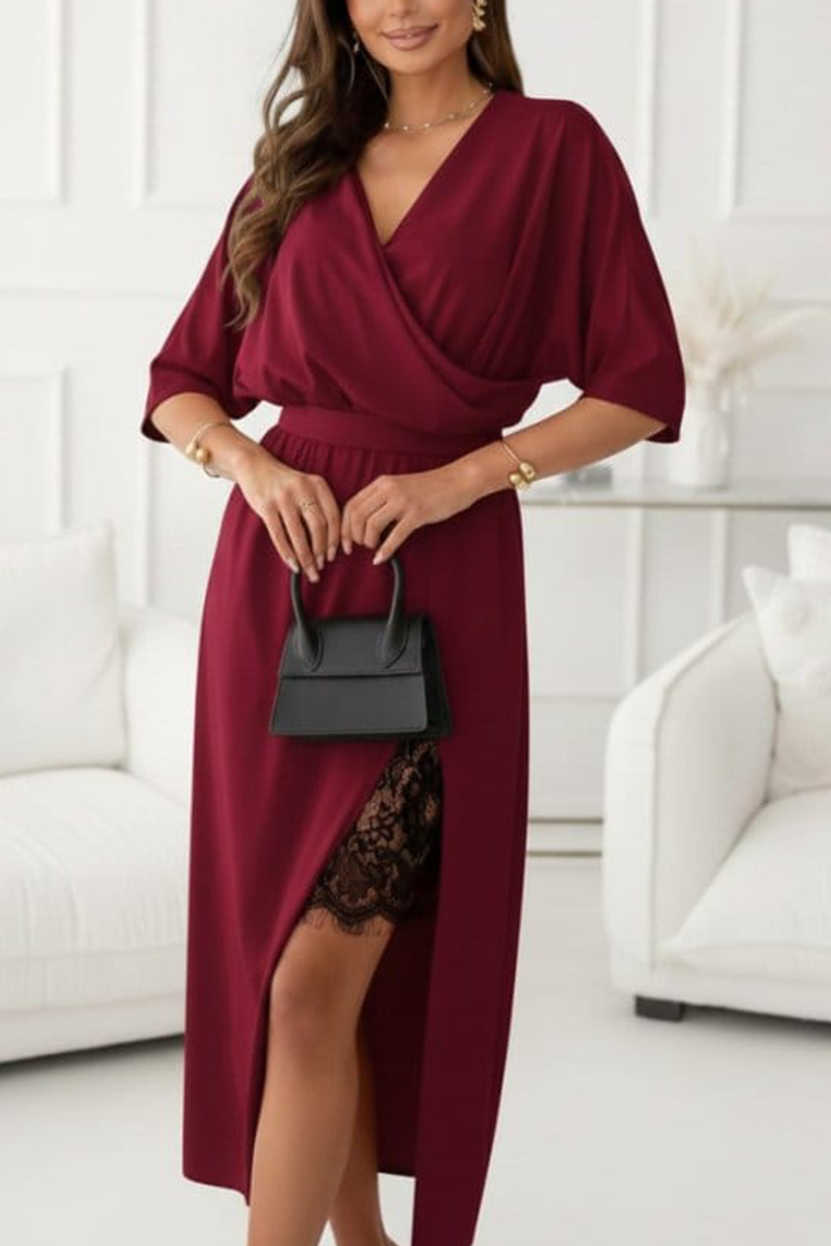 • Моделът е с миди дължина, секси дантела, цепка, къси ръкави и V- образно деколте.