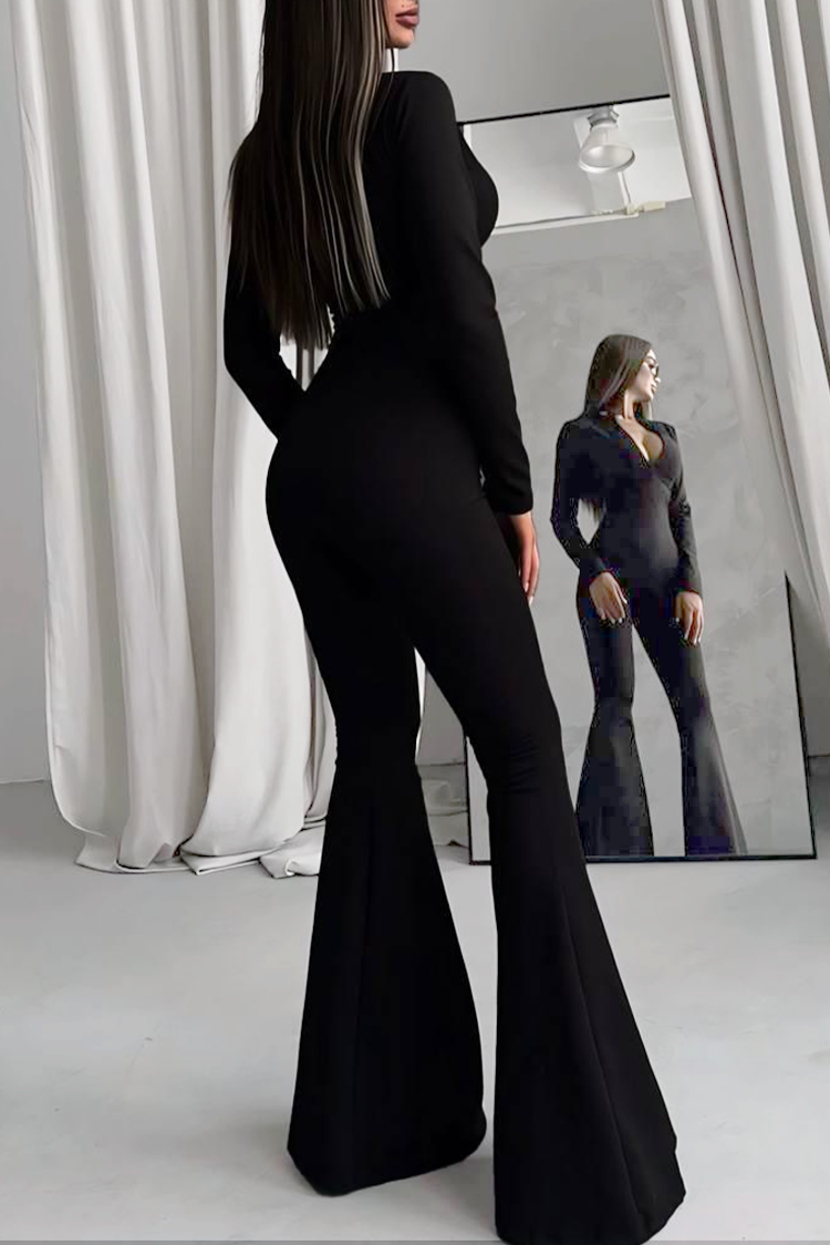 - Секси гащеризон с едноцветен десен и ефектно деколте, подходящ за ежедневието и парти визии.