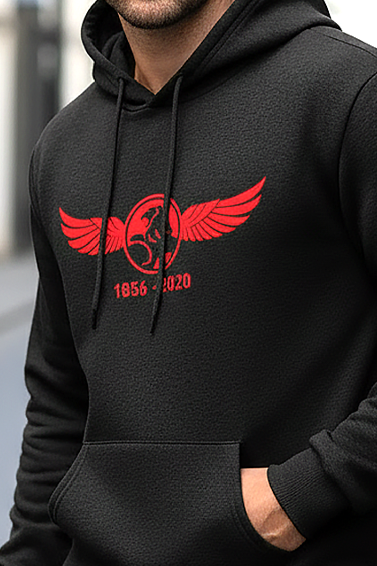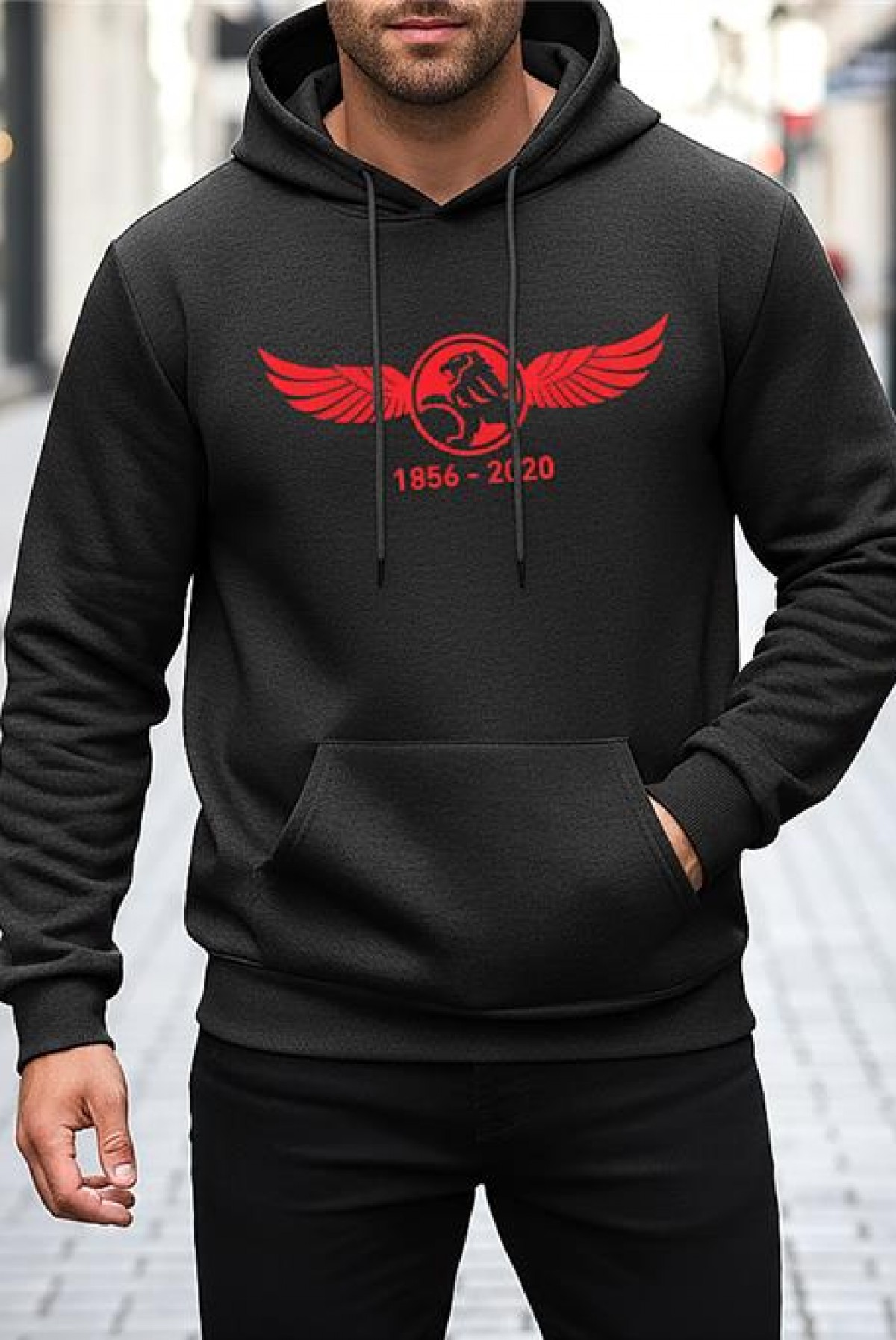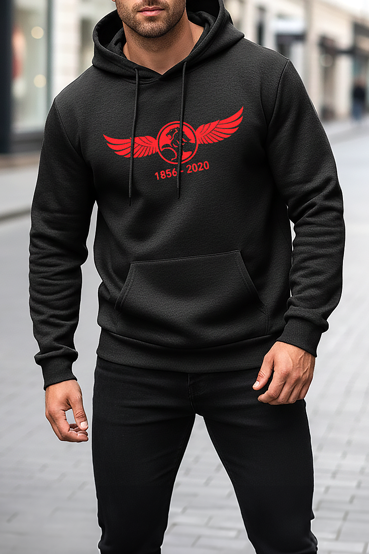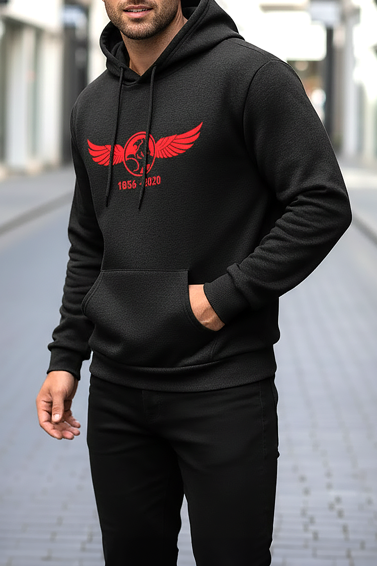 • Практичен мъжки суичър с принт в черен цвят, подходящ за различни модни съчетания.