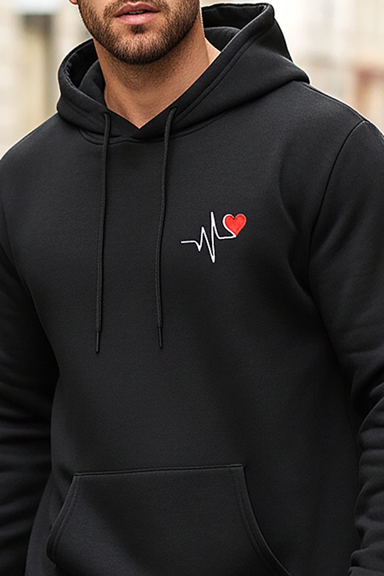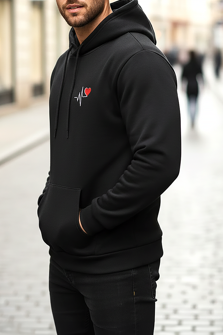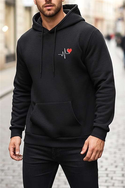 • Практичен мъжки суичър с принт в черен цвят, подходящ за различни модни съчетания.
