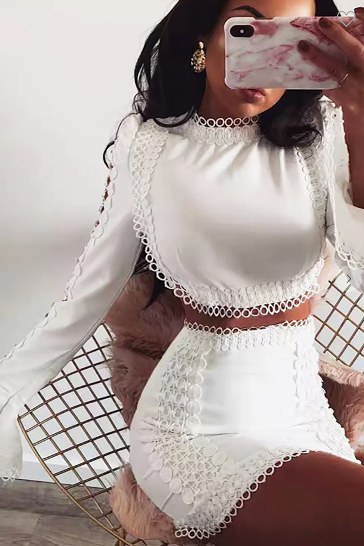 • За перфектната визия, изберете този елегантен комплект в бял цвят, подходящ за различни модни поводи.