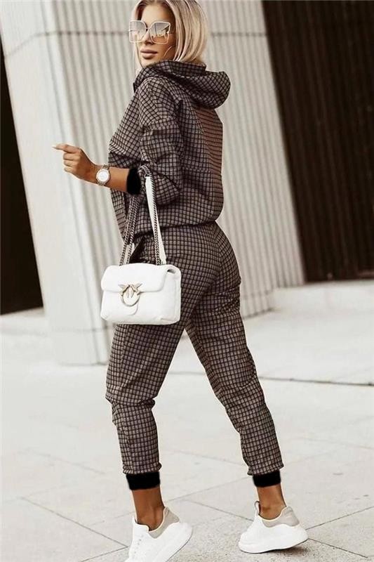 - Актуално предложение за вашето стилно ежедневие - дамски комплект от две части с ефектно каре.