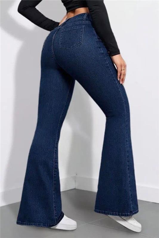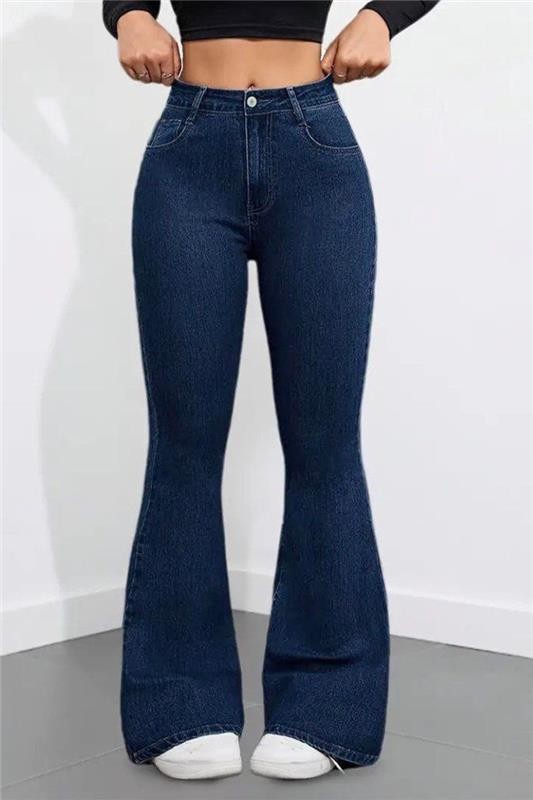 - Изчистен модел дамски дънки в тъмносин цвят, подходящи за ежедневието или разходка.