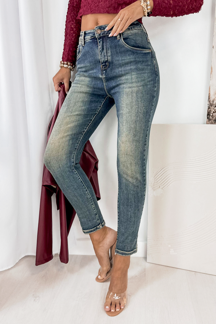- Basic модел дамски дънки в светлосин цвят с избелен ефект, подходящи за ежедневието или разходка.