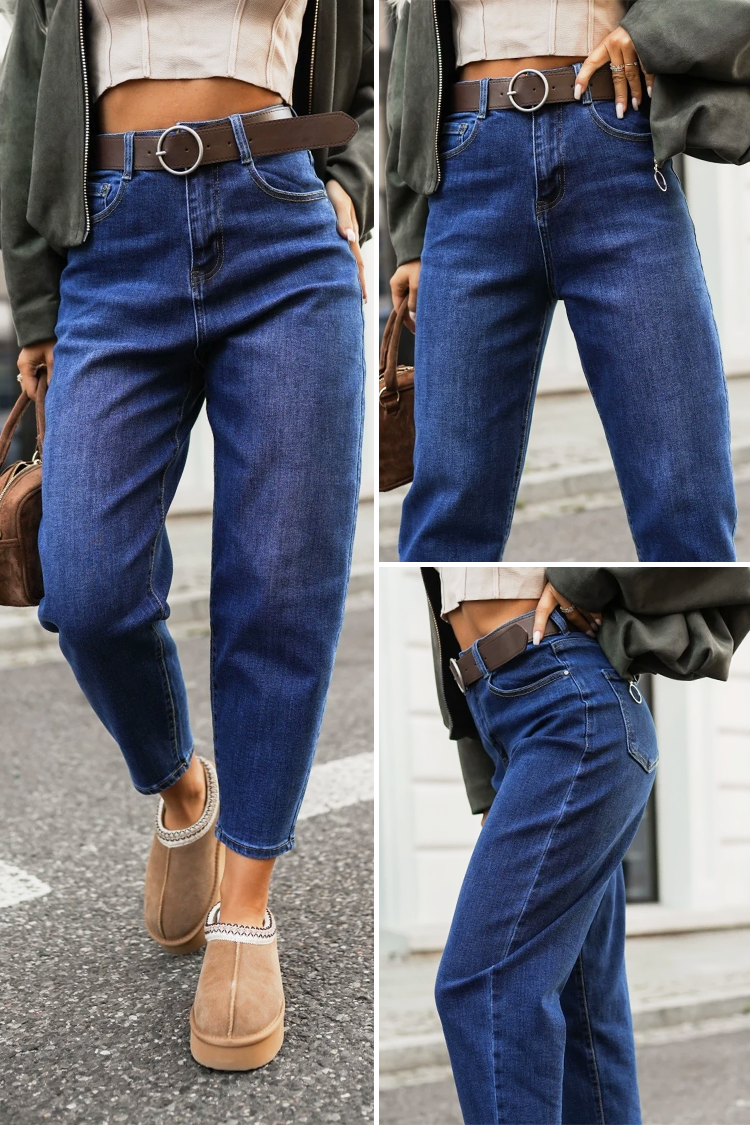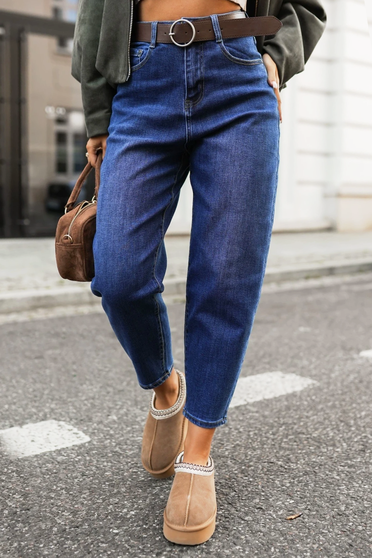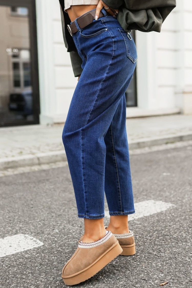 - Модел дамски дънки в тъмносин цвят, подходящи за ежедневието или разходка.