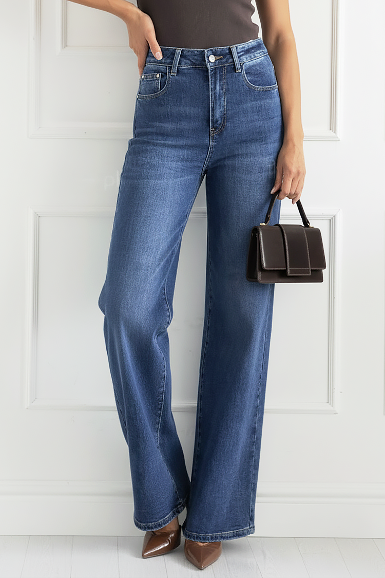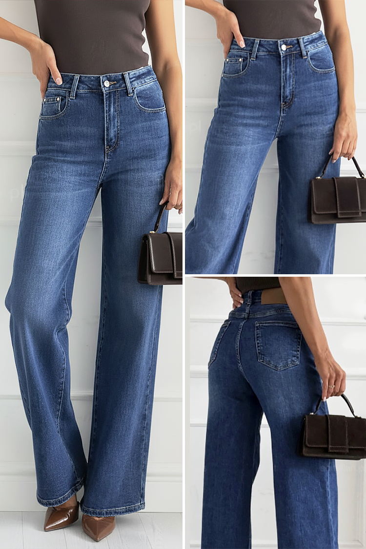 - Моделът е с висока талия, широки крачоли, тренди дизайн и изтрит ефект.