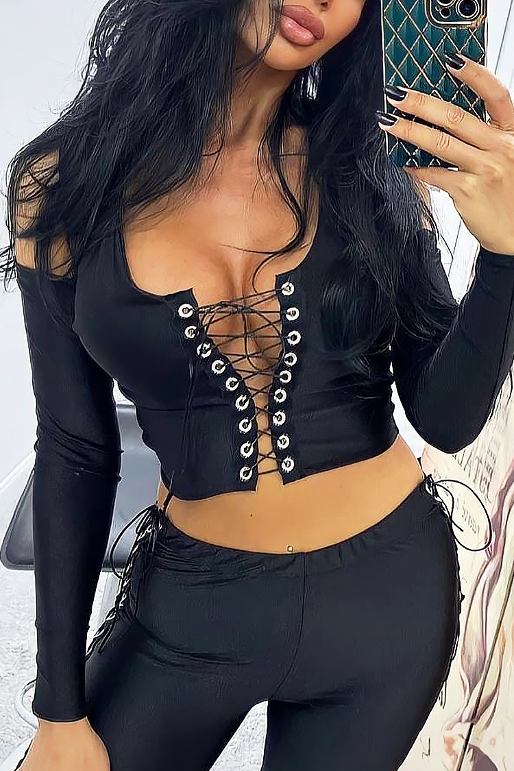 - За привлекателна, парти визия, изберете този комплект от две части с ефектни връзки.