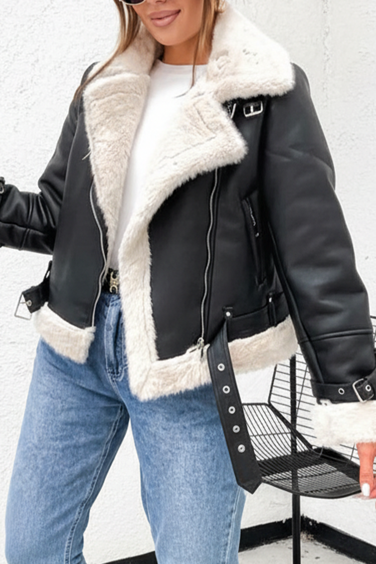 - Моделът е с комфортна кройка, къса дължина, джобове, яка, колан, машети и пух.
