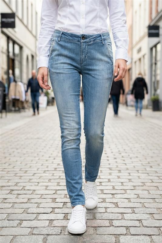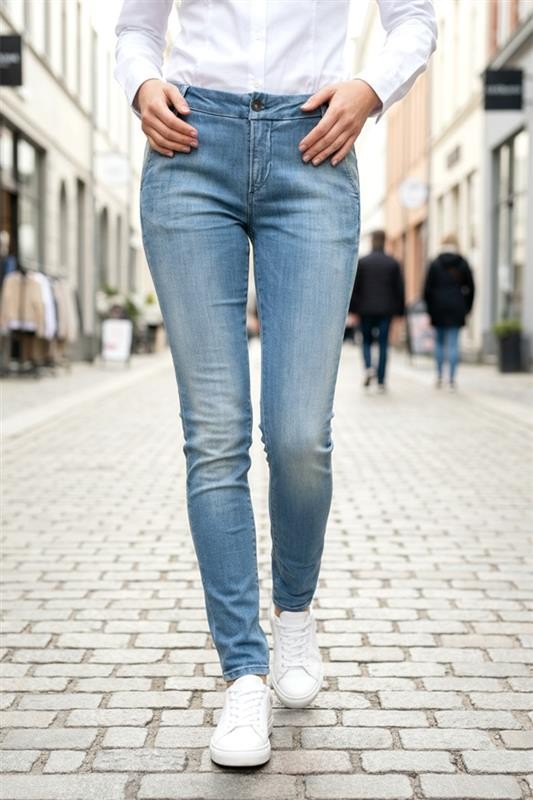 - Basic модел дамски дънки в светлосин цвят с избелен ефект, подходящи за ежедневието или разходка.